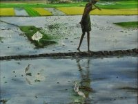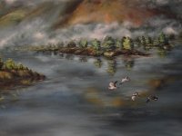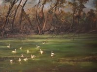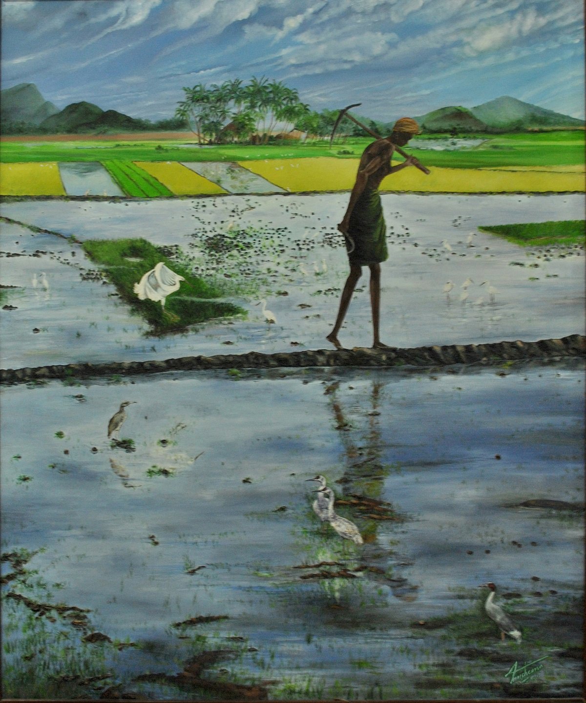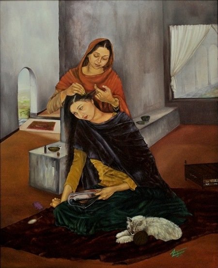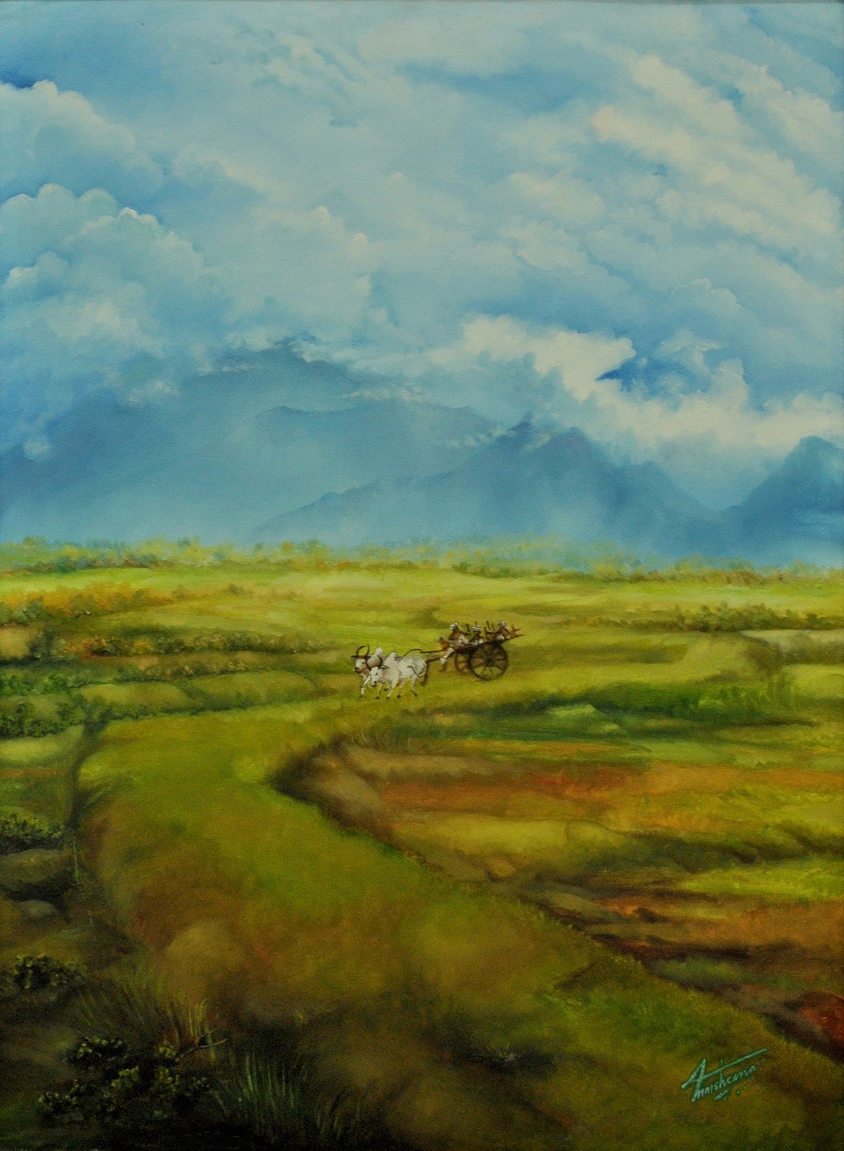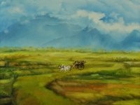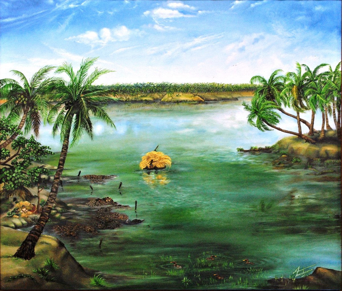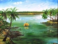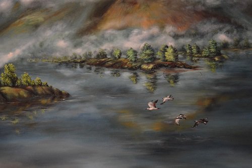 "Flow in Falls" (Warmth of Nature) (44"x 36") . Nothing captures the forceful resilience, natural wonder,and eye pleasing appeal of nature than the majestic waterfalls captured in this oil painting. It is a stunning real life depiction of the Hoganakal Wa